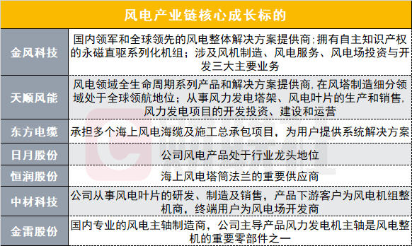 财联社梳理风电产业链核心成长标的如下: