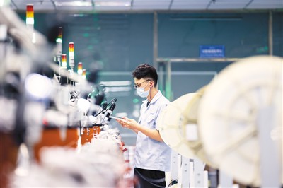 在江苏省宿迁市泗洪经济开发区,庆邦电子元器件(泗洪)有限公司生产的高频芯片电感、晶片电感等产品畅销欧美、日、韩等国家和地区,产量约占世界总产量的5%。图为工人们在各自的岗位上忙碌。