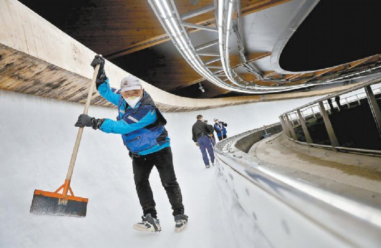 10月5日,“相约北京”雪车和钢架雪车国际训练周开始。每天,“雪游龙”里的冰面,要承受14个小时近千次滑行。为了让运动员们每天都能在最平整、光滑、纯净的冰面滑行,14名国际制冰师及20位平均年龄35岁的中国小伙子组成制冰师团队,两班倒,24小时实时修补冰面。