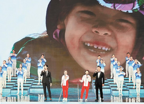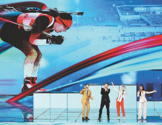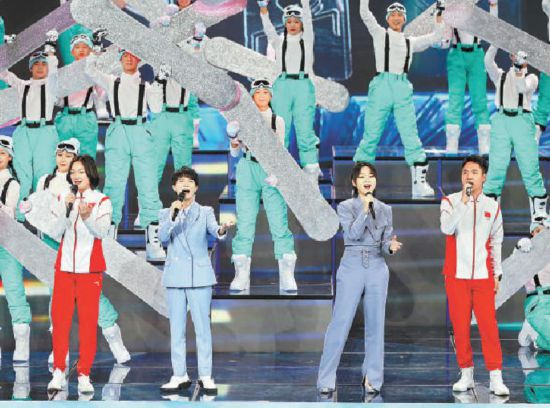 周深、周笔畅、李冰洁、杨皓然一起演唱歌曲《冰雪冬奥》。