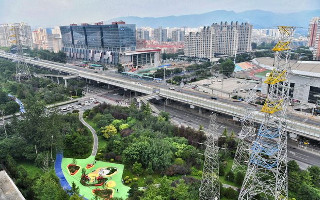 8月4日,阜石路首钢篮球馆南侧的花语公园。资料图片/新京报记者 陶冉 摄