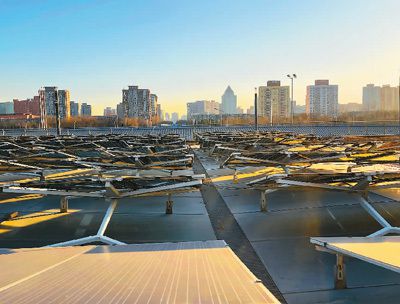 北京冬奥会场馆建设和能源供应是成功举办冬奥会的重要基础和保障。北京冬奥组委与北京市、河北省政府紧密合作,各项措施落实到位,全部场馆实现城市绿色电网全覆盖。图为北京冬奥村光伏发电现场。胡庆明摄(人民视觉)