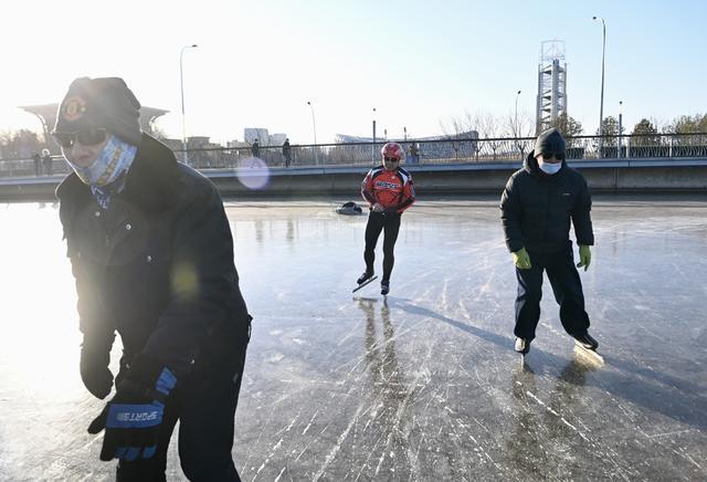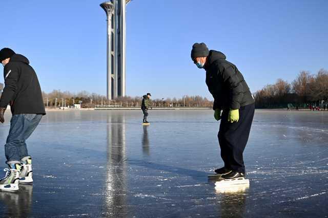 12月29日,北京奥林匹克森林公园,市民在冰面上滑冰。(中国日报记者 魏晓昊 摄)