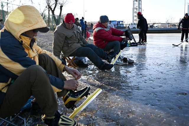 12月29日,北京奥林匹克森林公园,市民穿滑冰鞋准备开展冰上运动。(中国日报记者 魏晓昊 摄)