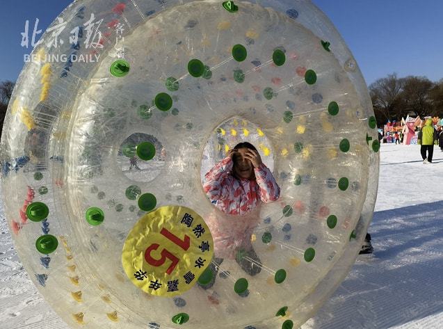 “今年嘉年华一共提供20个娱乐项目,包括玩雪、看小企鹅、荡秋千等5个免费项目。各个年龄段孩子都能在这儿找到喜欢的项目,2到5岁可以玩雪地悠波球、雪地旋转木马,大一点儿的孩子可以体验雪上飞碟,从6米高的雪道滑下,体验雪上飞翔的刺激。”陶然亭公园管理处经营管理科雪场负责人赵昌乐介绍。