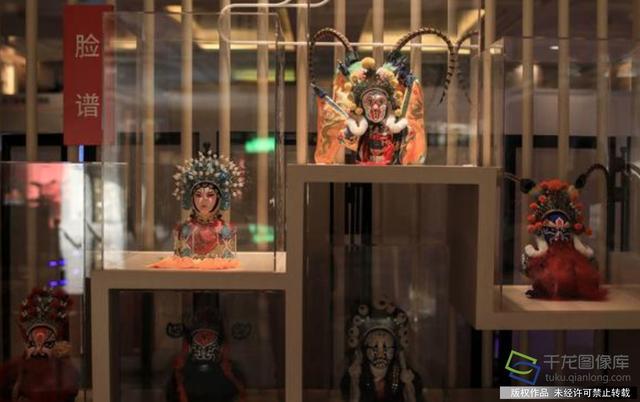 大堂陈设着各种京剧脸谱。千龙网记者 刘美君摄