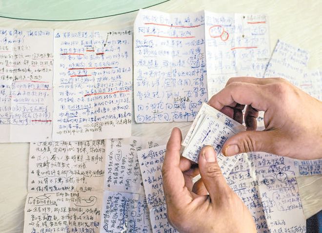 胡长立喜欢把滑冰动作的技术要领记在纸片上,没事就拿出来看看,这个习惯他坚持了近40年。