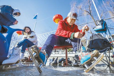 冬奥会即将开幕,周末的什刹海冰场十分热闹,市民冰雪运动的热情高涨。