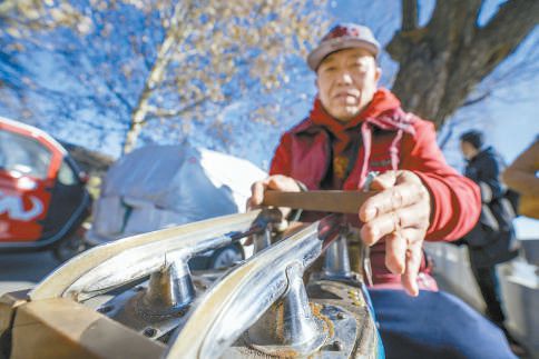 胡长立滑冰精益求精,连冰刀都是自己手工磨,引得路过的市民好奇围观。