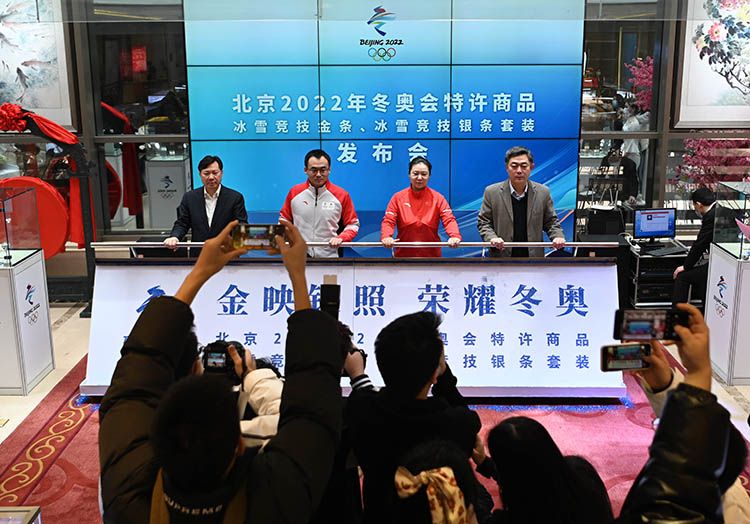 嘉宾为“冰雪竞技金条”和“冰雪竞技银条”套装揭幕。
