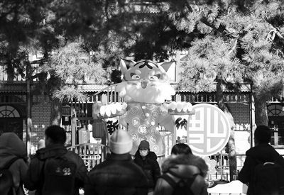 东北虎“萌萌”作为市属公园的新春生肖吉祥物,在北京动物园南门迎客