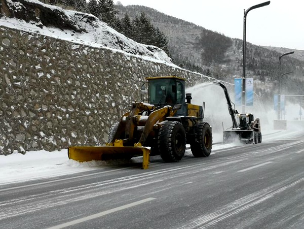 这种除雪车集扫雪、推雪、吹雪、撒布功能于一体,提升了扫雪铲冰的工作效率和作业质量。特别是加装的履带装置,可有效增强车辆雪天的机动能力和防滑能力;新增配的吹雪功能,则专门针对延庆山区积雪粘性小等特点,更有利于快速清雪。