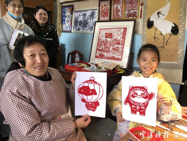 此时,在一旁看小栩墨剪纸的妈妈陈维丹脸上一直洋溢着笑容。“她很小的时候就喜欢做手工,现在对剪纸特别钟爱,已经来胡奶奶家好几次了。”家住浒山城区的陈维丹告诉记者,女儿现在在实验三小读书,年前,已经来过胡玉飞处拜师学艺,和老人一起剪了老虎、春天、奥运会等不少题材的剪纸。冬奥会开幕后,女儿喜欢看冬奥赛事,每次在电视上看到中国健儿比赛就喊“加油”,获得金牌时更别提多激动,国歌奏响时她还会站起来敬礼并跟着节奏唱。当然,奥运吉祥物“冰墩墩”和“雪容融”更是她的最爱。