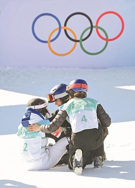 “我们所有选手关系都很融洽,大家一起分享对这项运动的激情,才能让我们成为更好的选手,一起将女子大跳台运动推向新高度。”季军获得者格雷莫这样说道。法国选手苔丝·勒德虽感到遗憾,仍然表示为谷爱凌感到骄傲。赛场上,竭尽全力展现最好的自我。赛场下,对手们安抚相拥,惺惺相惜。无论来自何方,无谓排名高低,参赛选手成为了朋友,他们是奥林匹克体育精神的诠释者。