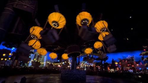 在功夫熊猫盖世之地深藏着一个花灯园,在这里游客将沉浸于熟悉的电影场景,观赏到形态各异、绚丽多彩的各式花灯。其中五盏电影人物造型的特色花灯栩栩如生地呈现了"盖世五侠"的形象,灯影传奇之中那12盏大型花最为壮观,每一盏花灯上都绘制不同功夫大师的形象,且每一轮灯影传奇启动,都会有一盏花灯会亮起与其他11盏不同的颜色。此外,功夫熊猫盖世之地以全室内景点打造,游客可以无惧冬日严寒观赏各式花灯。