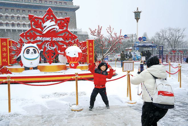 在“双奥之城”,市民纷纷走出家门,徜徉在纷飞的雪花中。北京街头的冬奥春节城市景观,成了网红打卡地。人们争相与“冰墩墩”“雪容融”合影,留下最难忘的冬奥记忆。