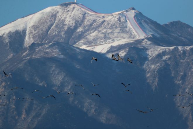 灰鹤盘旋在国家高山滑雪中心上空。受访者供图
