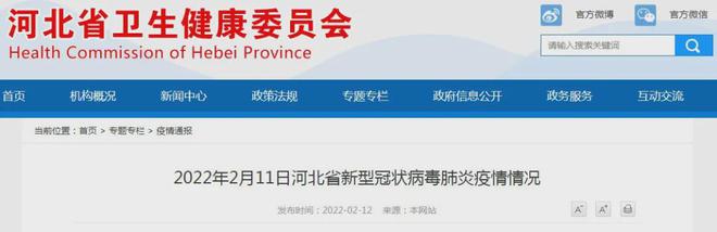 2022年2月11日0—24时,河北省无新增本土新型冠状病毒肺炎确诊病例,无新增本土无症状感染者。治愈出院1例。