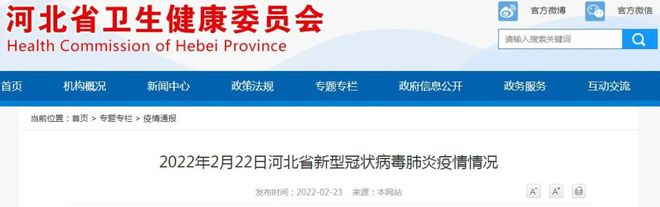 2022年2月22日0—24时,河北省无新增本土新型冠状病毒肺炎确诊病例,无新增本土无症状感染者。治愈出院3例。
