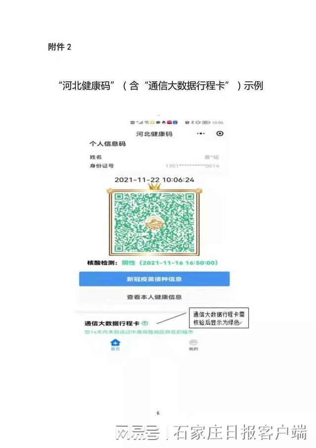 开考时间前7日内和48小时内两次核酸检测阴性书面证明(两次核酸检测采样时间至少间隔24小时)、《河北省2022年体育单招文化考试考生健康自我承诺书》(见附件1)、考前一日内打印的“河北健康码”(含“通信大数据行程卡”),其中健康码和通信大数据行程卡均为绿码(样例见附件2,需彩色打印)。考点所在地疫情防控部门如另有要求,按当地疫情防控部门具体要求执行。