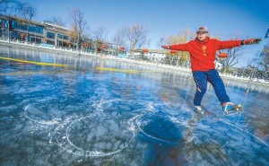 - 北京滑冰“老炮儿”冰上画五环为冬奥送祝福