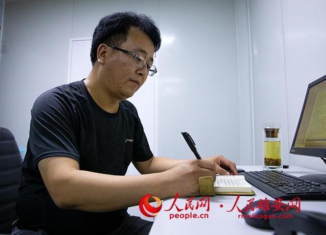 王占忠在办公室学习各项政策。人民雄安网 宋烨文摄