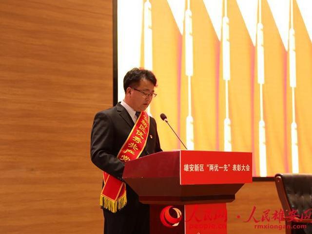 王占忠在雄安新区“两优一先”表彰大会上作为代表发言。人民雄安网 窦微摄