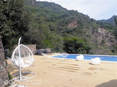 前干涧村的“柿外”民宿,由一位建筑设计师设计建造,休闲区的露天泳池和躺椅等,体现出时尚艺术气息。
