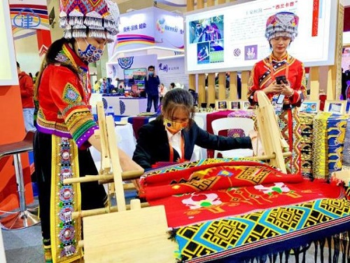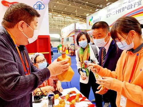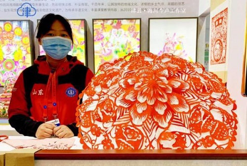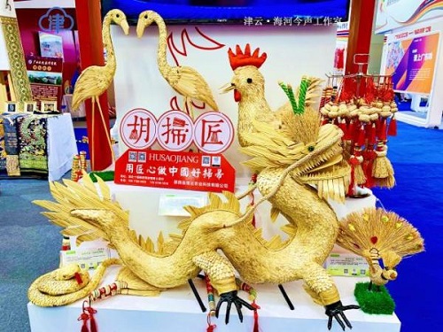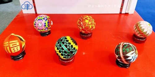 在天津展台另一端,各种花色图案的非遗作品手鞠球吸引了不少观众拍照留念。这一个个看似不起眼的小球,却“绣”出了农家人红红火火的好日子。“我们来自宝坻区大唐庄镇东杜庄村,全村300多人,1150亩耕地全部流转后,就是这些五彩缤纷的小绣球,让我们的生活越过越有色彩。”手鞠球制作人员告诉记者,几年前,在天津开放大学的帮扶下,村里打造了以手鞠球制作为代表的“互联网+非遗”项目,让非遗技艺在传承和保护的同时,助力村民就业,助推乡村振兴。