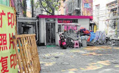记者走近观察,施工用的架子在该建筑左手边断掉了。一个彩钢房搭建的简易建筑通过杂物与之相连。外表看去,该简易建筑10多平方米,在胜利路边,与之相对应的胜利路边人行道上有块一米多高的广告牌,上写“复印照相”等字样。里面的刘先生坦言,这就是个违建,是他自己找人搭建的,没办过任何手续,屋内水电等管线是自己找地方接的。