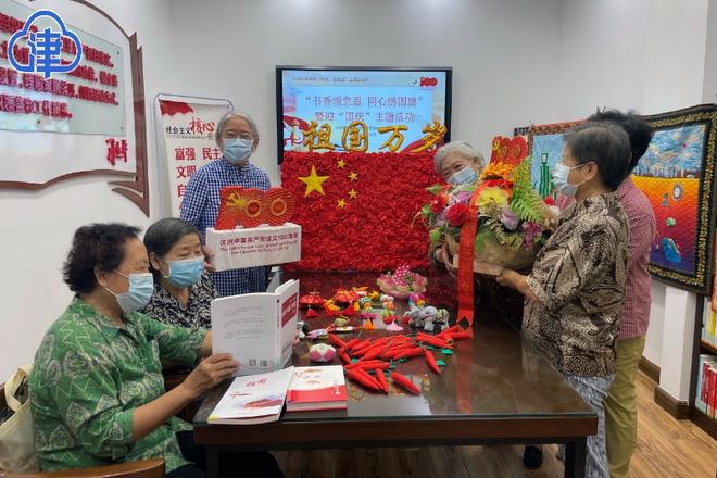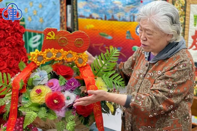 同心绣国旗”暨迎国庆主题活动,天塔街社区的老人们用自己制作的“庆祝建党百年”、“迎国庆”布艺作品营造了现场浓浓的国庆氛围。