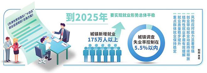 《方案》明确主要目标:到2025年,要实现就业形势总体平稳,城镇新增就业175万人以上,城镇调查失业率控制在5.5%以内,重点群体就业保持稳定;就业质量稳步提升;结构性就业矛盾有效缓解;创业带动就业动能持续释放;风险应对能力显著增强。