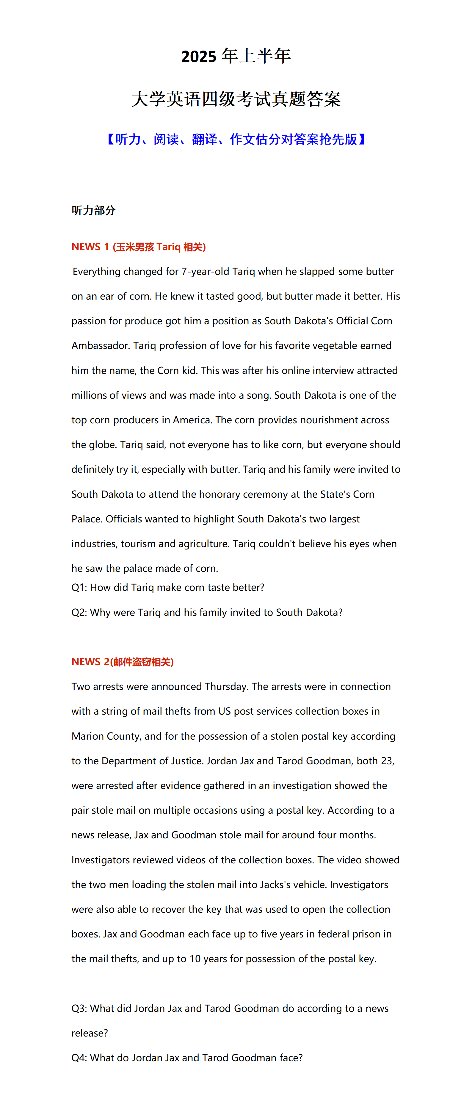 篇幅有限。未能展示全部真题答案,大家可点击页面下方【真题下载】,从网盘下载2025年大学英语四、六级真题答案完整PDF文档,为后续备考或成绩查询做好准备。