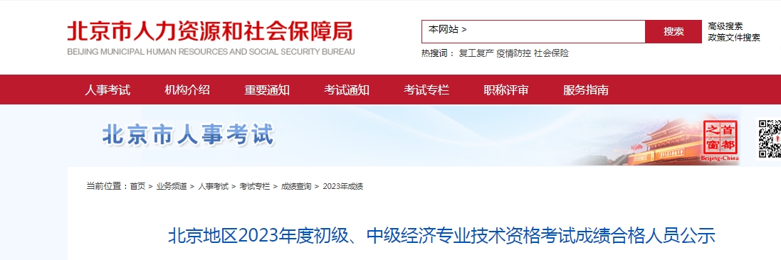 北京地区2023年度初级、中级经济专业技术资格考试成绩合格人员公示