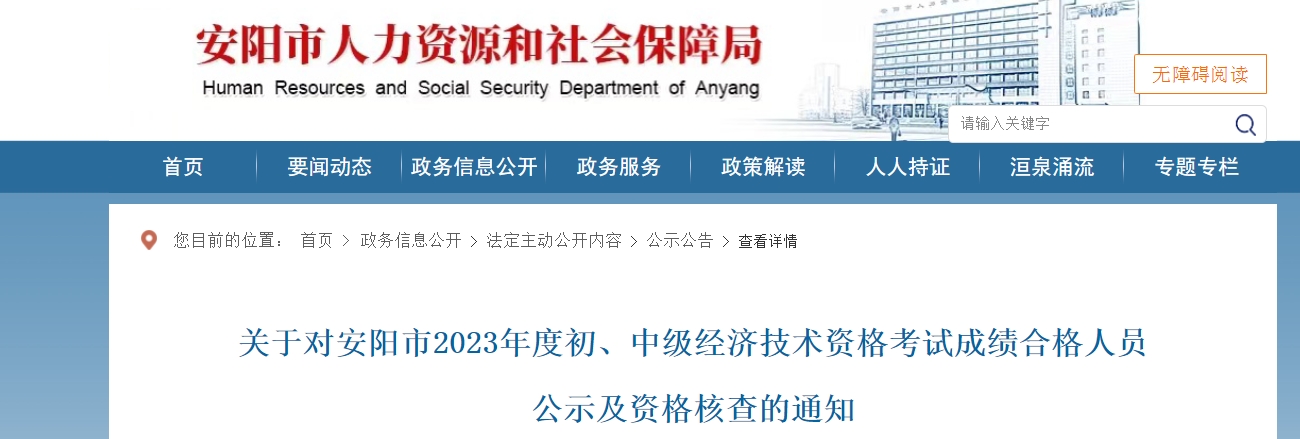 关于对安阳市2023年度初、中级经济技术资格考试成绩合格人员