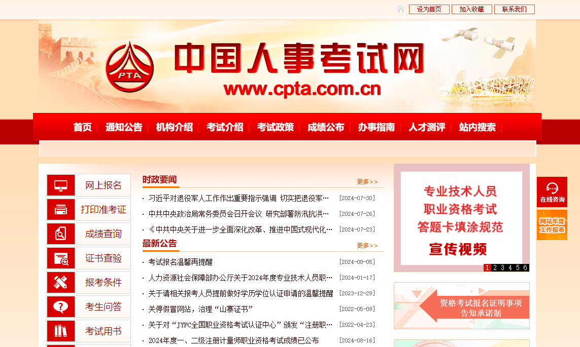 全国专业技术人员资格考试服务平台(网址:http://www.cpta.com.cn)