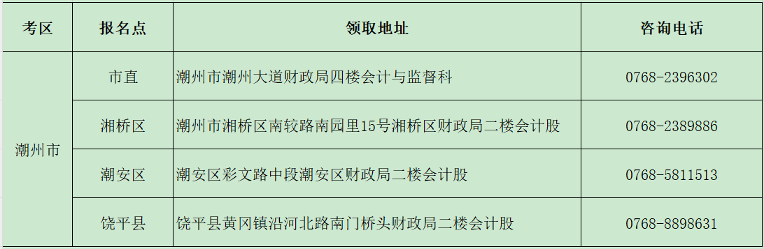 附件:潮州市2025年初级会计专业技术资格考试合格证书领取地址一览表