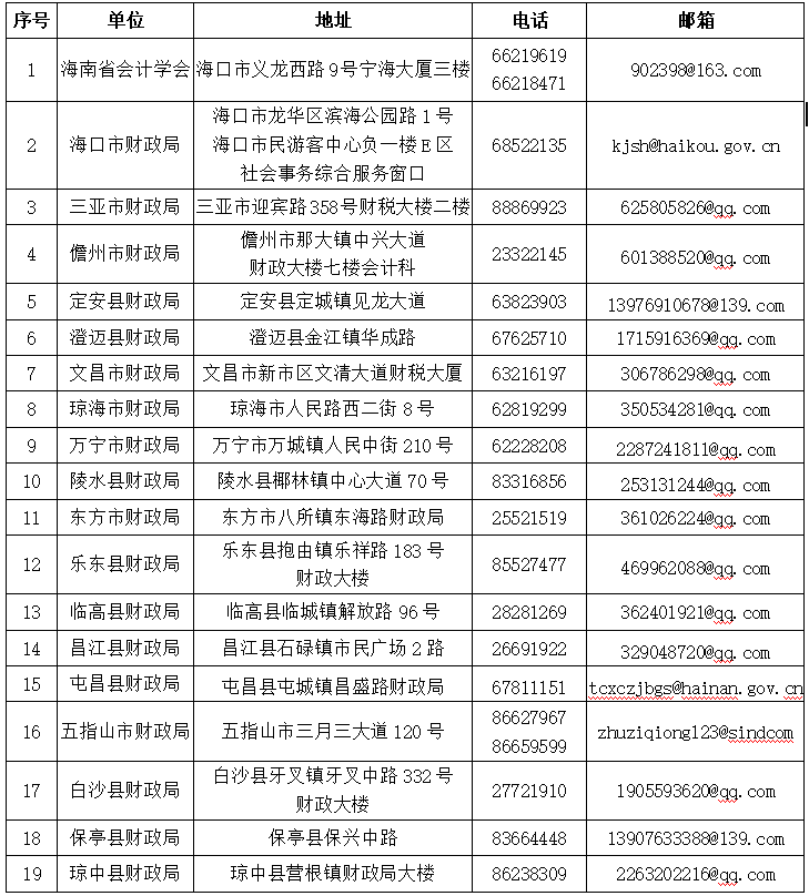 附件3:2026年度会计资格考试海南考区报名点联系方式