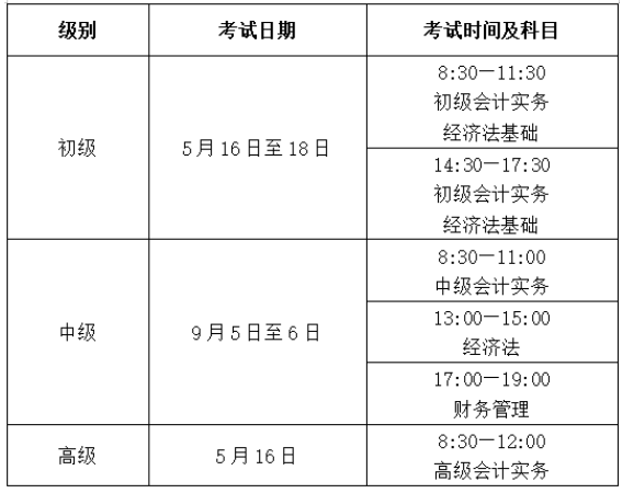 会计资格考试时间、批次如有调整,将另行通知。