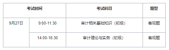 25年初级审计考试定于2025年9月27日举行,考试方式为闭卷笔答,各级别的考试时间及科目为: