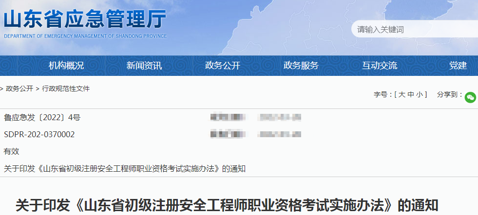 为做好初级注册安全工程师职业资格考试组织工作,根据应急管理部、人力资源社会保障部《关于印发〈注册安全工程师职业资格制度规定〉和〈注册安全工程师职业资格考试实施办法〉的通知》,结合我省实际,制定了《山东省初级注册安全工程师职业资格考试实施办法》详情如下: