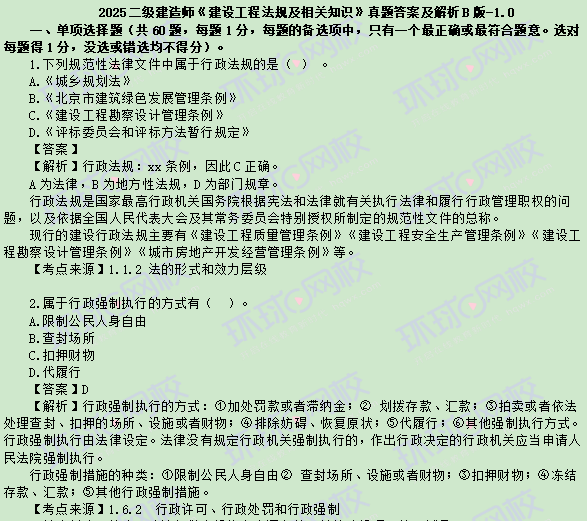 因文章篇幅有限,更多科目真题答案和其他备考资料考生可以在本页面底部找到资料下载区,点击“立即下载/网盘链接”即可免费获取2025年二级建造师考试真题。