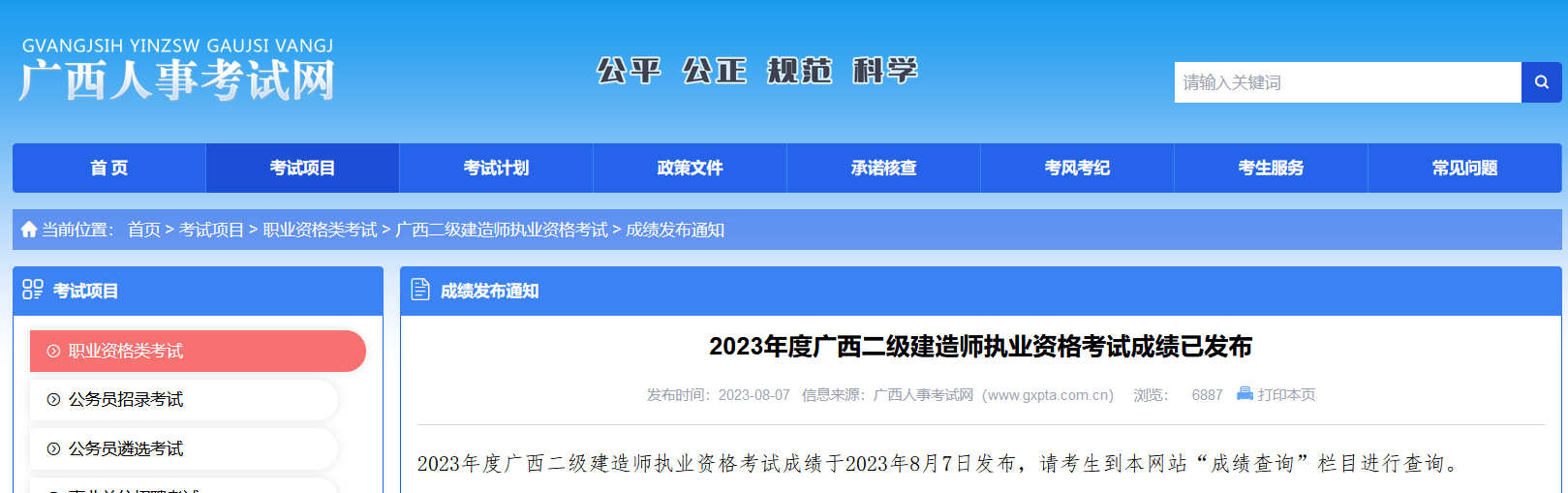 2023广西二级建造师成绩查询官网: