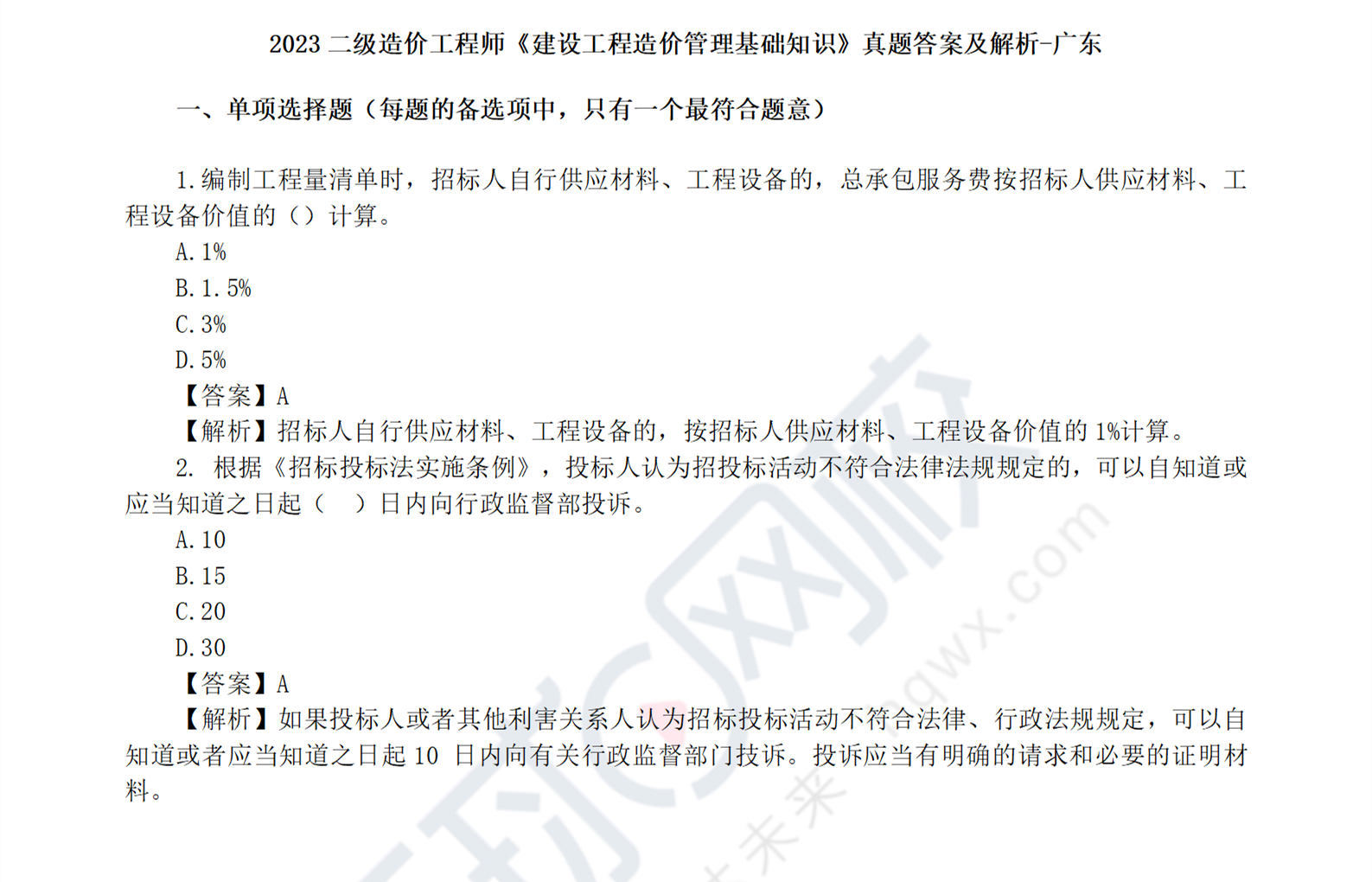 首页 > 二级造价工程师 > 备考资料 > 2023年广东二级造价师《造价管理》真题解析