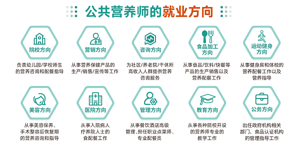 公共营养师的就业方向多样,包括医疗机构、健康咨询、食品行业、教育机构、健康管理、科研工作以及政府与非营利组织等。