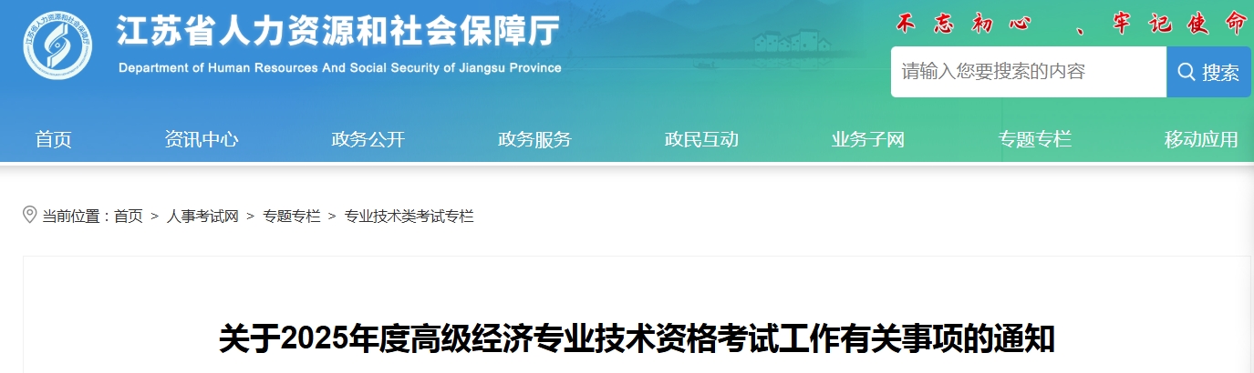 根据《关于做好2025年度高级经济专业技术资格考试考务工作的通知》(人考中心函〔2025〕10号)和《省人力资源社会保障厅关于进一步加强我省专业技术资格考试资格审查工作的通知》(苏人社发〔2018〕383号)精神,为做好我省2025年度高级经济专业技术资格考试考务工作,现将有关事项通知如下: