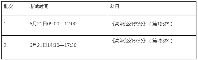 高级经济考试分为2个批次实施。各批次专业类别的划分和考试时间,视报名情况另行确定。
