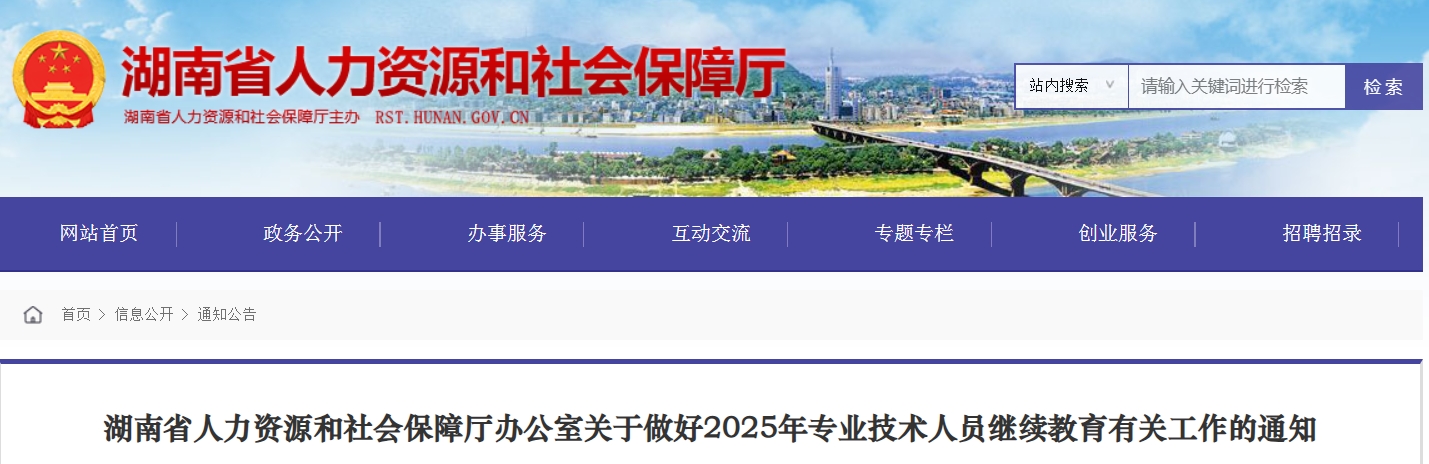 湖南省关于做好2025年专业技术人员继续教育有关工作的通知