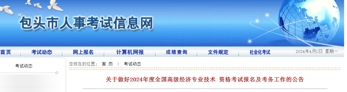 根据内蒙古自治区人事考试院《关于做好2024年度全国高级经济专业技术资格考试报名及考务工作的通知》(内人考函〔2024〕11号)文件精神,为做好我市2024年度全国高级经济专业技术资格考试报名及考务工作,现将有关报名事项通知如下: