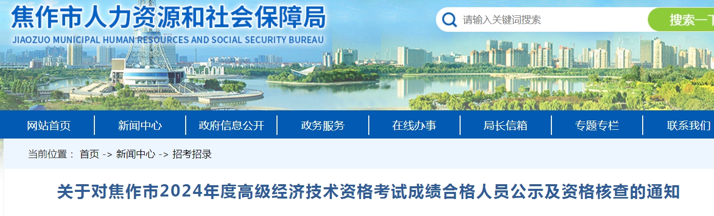 关于对焦作市2024年度高级经济技术资格考试成绩合格人员公示及资格核查的通知